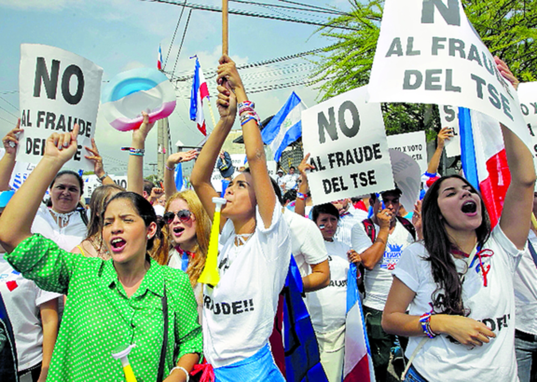 La marcha partió de una plazoleta y llegó a las cercanías del hotel capitalino donde se lleva a cabo el escrutinio definitivo de las actas. Los manifestantes de la opositora Alianza Republicana Nacionalista (Arena, derecha) portaban pancartas y gritaban consignas contra el supuesto fraude y para exigir que el Tribunal Supremo Electoral (TSE) haga un recuento voto por voto, como ha exigido el candidato de ese partido Norman Quijano.