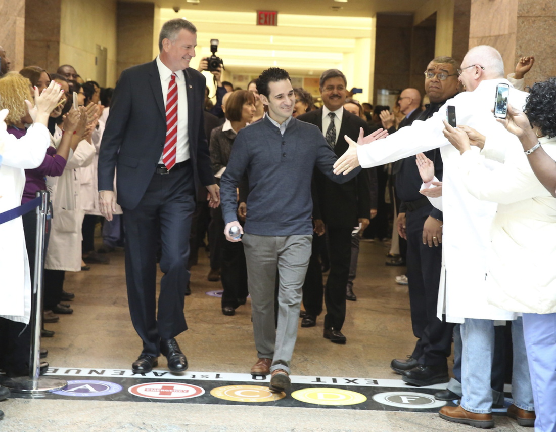 Spencer, de 33 años, compareció ante los periodistas junto con el alcalde de Nueva York, Bill de Blasio, en el mismo hospital, el Bellevue de Manhattan, donde fue ingresado el 23 de octubre al presentar síntomas de ébola.