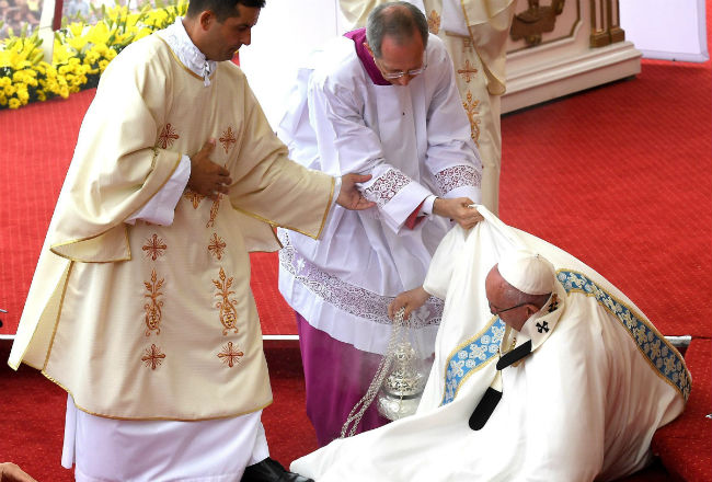 Papa Francisco se cae durante misa en Polonia