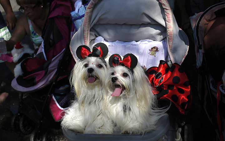 Desfilaron en una calle cerca de la playa en el barrio Barra de Tijuca, tras un concurso de disfraces, que vio pasar desde una poodle Mujer Maravilla, un salchicha de Chapulín Colorado hasta una perrita mixta vestida de la legendaria cantante y bailarina Carmen Miranda.