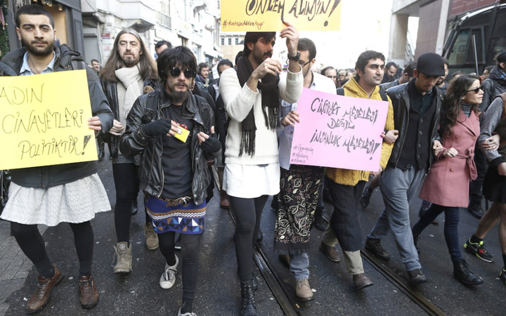 Cientos de hombres marcharon ayer junto a las mujeres en una manifestación contra la violencia machista en Estambul, aunque solo una veintena de valientes llevaron a la práctica la consigna de vestir minifalda para denunciar el sexismo.
