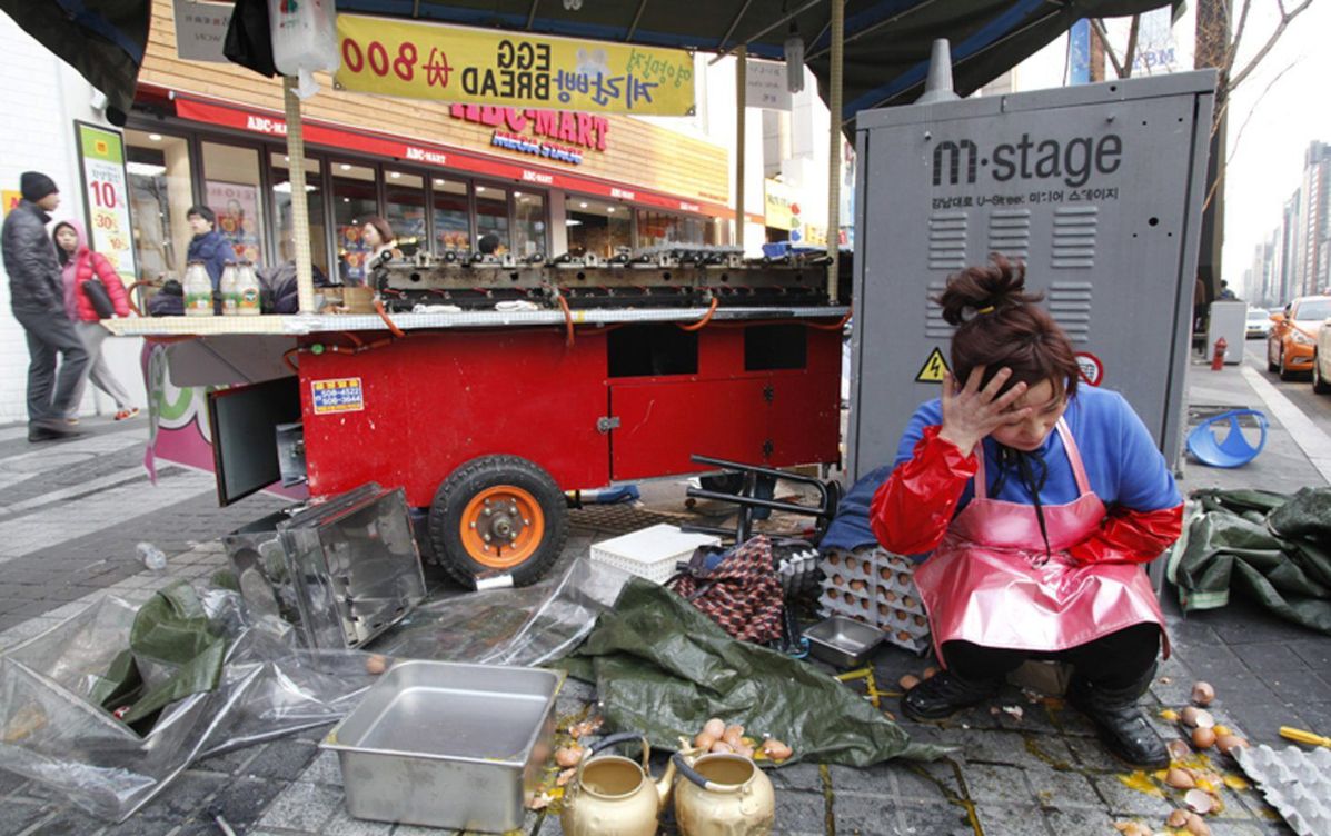 Seúl, Corea del Sur/EFEDos años después del "boom" de Gangnam Style, los tradicionales vendedores ambulantes del distrito de Seúl al que está dedicada la famosa canción sufren a diario el acoso y la violencia de matones enviados por las autoridades en su afán de "limpiar las calles" de todo lo que no aparente lujo."Todavía me duelen los hombros y las piernas de la última paliza", lamenta Choi, un hombre de 48 años que cocina y vende bollos artesanos en esta zona al suroeste de la capital.Su austera y destartalada cocina con ruedas se ha convertido en un problema desde que la atención mundial se fijara en Gangnam tras el pegadizo videoclip de Psy, que aborda con sutil ironía la vida superficial de los jóvenes adinerados de este selecto distrito.Alentada por el aumento del turismo, especialmente de extranjeros con alto poder adquisitivo, la alcaldesa Shin Yeon-hee decidió "convertir Gangnam en un espacio de lujo y distinción", indicó a Efe uno de los miembros de su equipo."Los vendedores ilegales son un problema, así que erradicarlos es imprescindible", asegura Kim Kwang-soo, director de la Oficina de Turismo de Gangnam.Así, "les avisamos tres veces de que se vayan" y si no lo hacen, apunta, "nos vemos obligados a utilizar métodos físicos" para "limpiar las calles".Los "métodos físicos" consisten en contratar a una empresa que envía matones para intimidar a los vendedores, agredirles y destrozar sus carros, algo que queda patente en numerosos vídeos que circulan en internet. dd-gangman 2.jpg Este modus operandi es legal en la democrática Corea del Sur, donde numerosas asociaciones han denunciado durante años el uso de estos métodos de persuasión violenta para expulsar de una calle, un edificio antiguo o un local a quienes se convierten en un estorbo.Sin embargo, casi todos los ambulantes regresan a la mañana siguiente, como la señora Yun, de 78 años, que vende gorras y accesorios a los transeúntes en su pequeño puesto de una de las aceras de 10 metros de ancho que se despliegan en la imponente avenida de Gangnam-daero."Estoy vieja, vivo sola, mi familia no me ayuda y esto es lo único que puedo hacer para sobrevivir", lamenta esta anciana mientras recuerda con lágrimas de impotencia recientes episodios en los que los gánsteres la han amenazado, insultado, y han destrozado su puesto y sus mercancías.Yun, que al igual que otros vendedores se identifica a Efe con su apellido por miedo a represalias, acumula 30 años trabajando en Gangnam cada día, sin festivos, sin vacaciones, desde el mediodía hasta la madrugada en este negocio que le aporta lo justo para sobrevivir pero es considerado ilegal."El distrito de Gangnam ocupa el primer lugar en Seúl en prevención de actividades ilegales", comenta a Efe orgulloso el director de la Oficina de Turismo, tras criticar que los ambulantes no declaran sus ingresos. dd-gangman.jpg Sin embargo, precisamente la mayor reivindicación de los vendedores callejeros es que les permitan realizar su actividad legalmente y pagar impuestos."Aunque no pagamos impuestos, las multas constantes de la policía nos salen mucho más caras", explica Yim Tae-wan, delegado de Gangnam de la asociación que representa a los vendedores callejeros en todo el país.Antes de que asumiera el cargo la actual alcaldesa del distrito, conocida entre sus detractores como "la dama de hierro de Gangnam", hubo un proyecto para legalizar a este colectivo de trabajadores irregulares, pero las autoridades lo dejaron incompleto y ahora se niegan a negociar, denuncia Yim.La venta en puestos ambulantes es una actividad con una larga tradición en Corea del Sur que se desarrolla legalmente en infinidad de espacios urbanos, entre ellos la popular calle turística de Insa-dong o la concurrida zona de Namdaemun en pleno centro de la capital.La Organización de Turismo de Corea (KTO), de hecho, promociona la comida callejera como un atractivo para los visitantes extranjeros en su página web http://spanish.visitkorea.or.kr.Así, el organismo estatal recomienda a los extranjeros probar el "tteokbokki" (pasta de arroz con salsa de pimiento rojo), "twigim" (aperitivos fritos) o "dak-kkochi" (brochetas de pollo) en los mismos puestos y carros que los "gánsteres legales" surcoreanos destrozan impunemente en Gangnam por orden de las autoridades.
