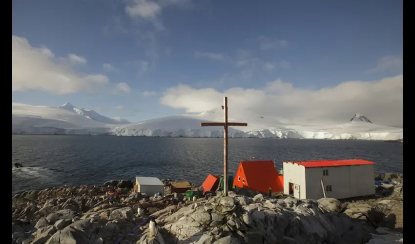 El sacerdote ruso de 38 años luce una sotana negra y un chaleco que tiene cosidos parches con imágenes de pingüinos y focas que representan sus cuatro años oficiando misa en este lugar. Si bien extraña a su familia y los inviernos oscuros y largos, dice que en ningún otro sitio se siente tan cerca de Dios.