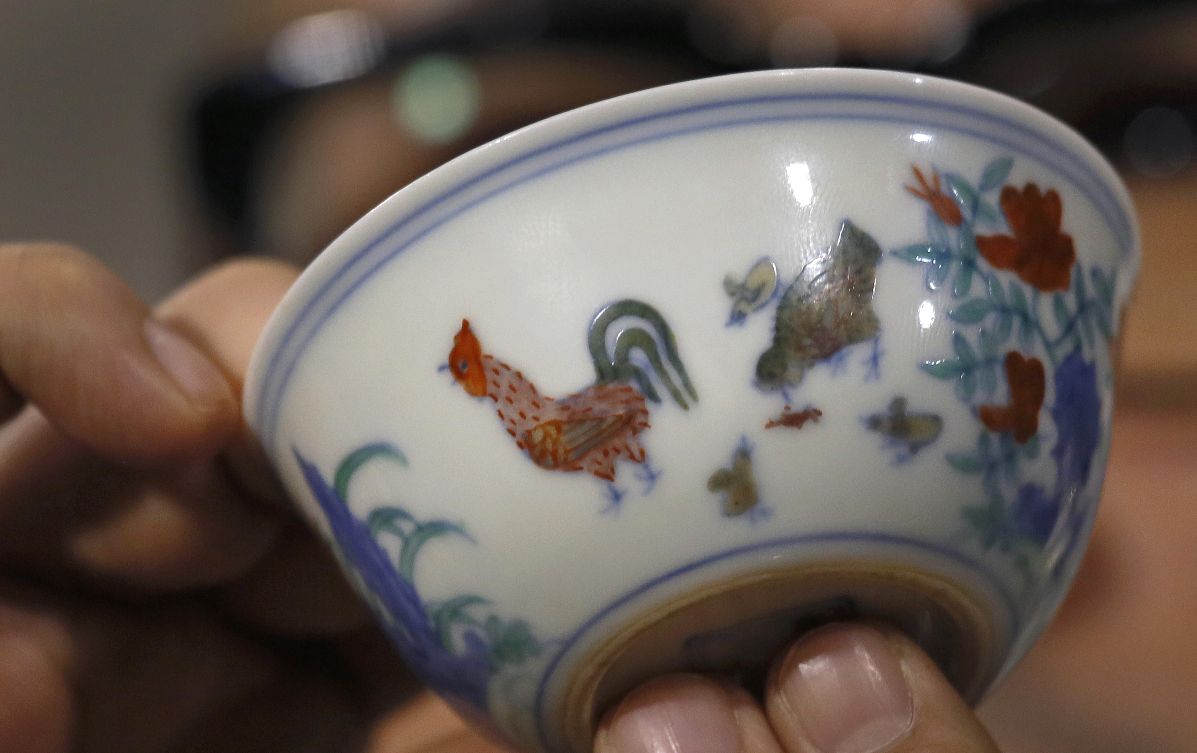 Hong Kong/APUn coleccionista de Shanghai adquirió el martes un tazón chino de porcelana de la dinastía Ming por 36 millones de dólares en una subasta de Hong Kong, superando la marca mundial anterior por un objeto de porcelana chino. La casa rematadora Sotheby's dijo que Liu Yiqian fue el ganador por el pequeño tazón que apenas alcanza los 8 centímetros (3,1 pulgadas) de diámetro y tiene más de 500 años. Es llamado popularmente la ``taza del pollo'' porque está decorado con un gallo y una gallina acompañados de varios polluelos. Fue hecho durante el reinado del emperador Chenghua, de la dinastía Ming, que gobernó de 1465 a 1487. Sotheby's dijo que solamente hay 17 tazones de ese tipo, cuatro de ellos en manos privadas y el resto en museos. dd-honmg konk.jpg La taza pequeña viene a HK $ 281,200,000 (EE.UU. $ 36,1 millones