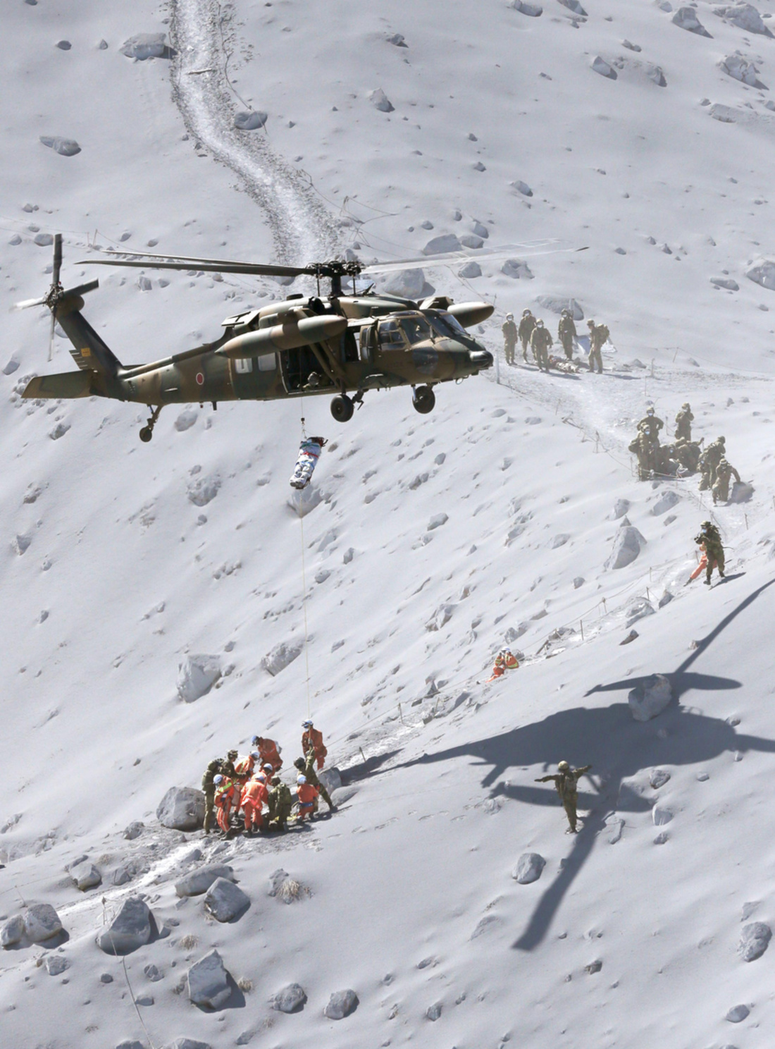Centenares de personas se encontraban practicando senderismo en el volcán en el momento de la erupción, y de ellas unos 240 han podido ser evacuadas, las últimas en la mañana de ayer y con la ayuda de un helicóptero de las Fuerzas de Autodefensa.