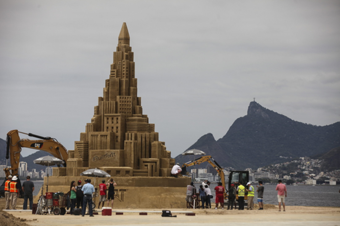 El castillo de arena construido por la subsidiaria de Caterpillar en Brasil supera en altura uno de 11.63 metros erigido el año pasado en EE.UU. y que figura actualmente como el mayor del mundo en el libro Guinness.