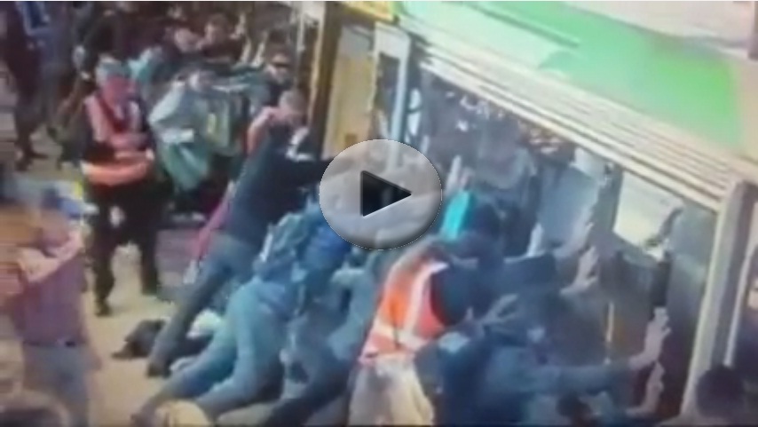 [Video] Pasajeros ladean vagón para liberar a hombre