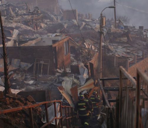 Suben a 140 las viviendas quemadas por incendio en Chile