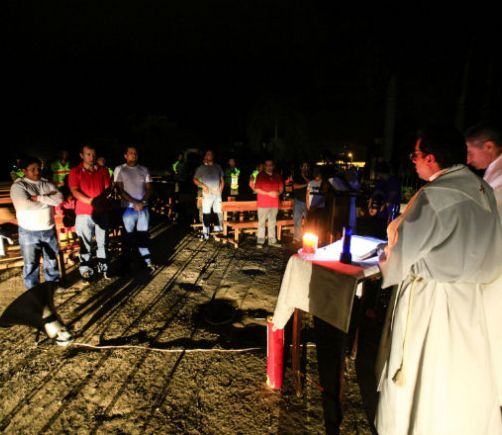 Sacerdote realiza misa en medio de las ruinas en Ecuador