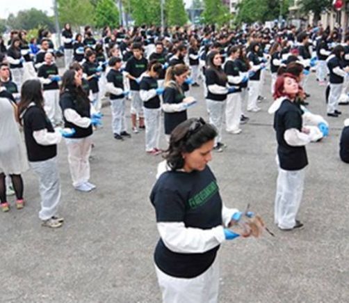Activistas veganos se manifiestan con animales muertos