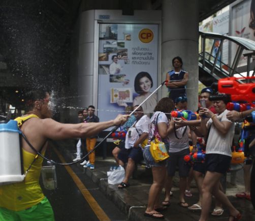 Celebran Año Nuevo con batallas de agua