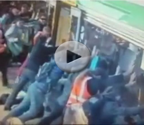 [Video] Pasajeros ladean vagón para liberar a hombre