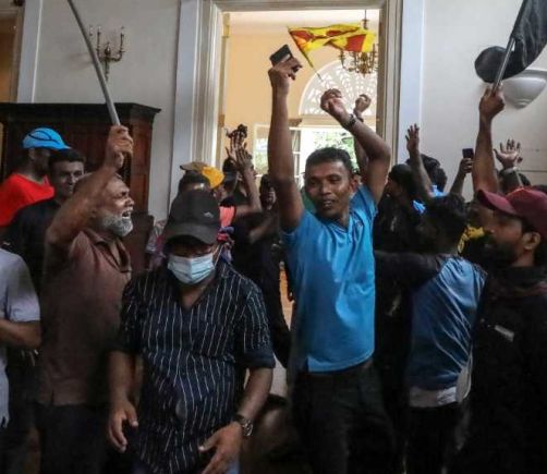 Manifestantes entran en la residencia oficial del presidente de Sri Lanka