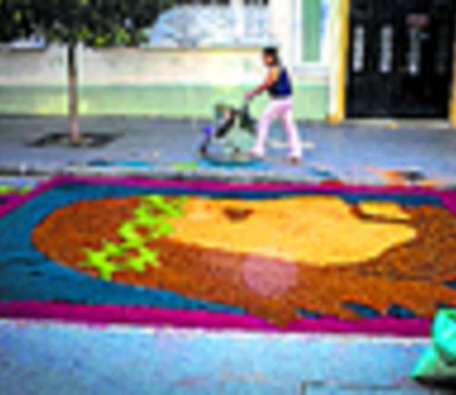 Fieles elaboran la alfombra más grande