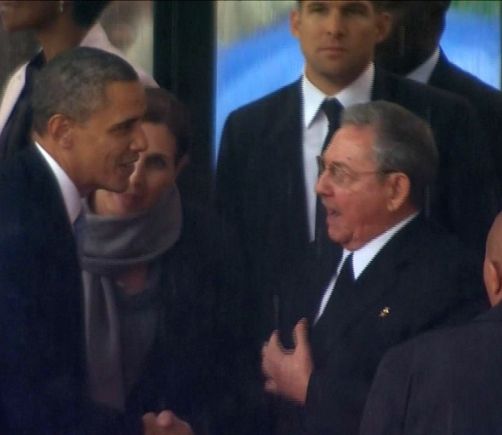 Obama y Raúl Castro se dan la mano en el funeral de Mandela