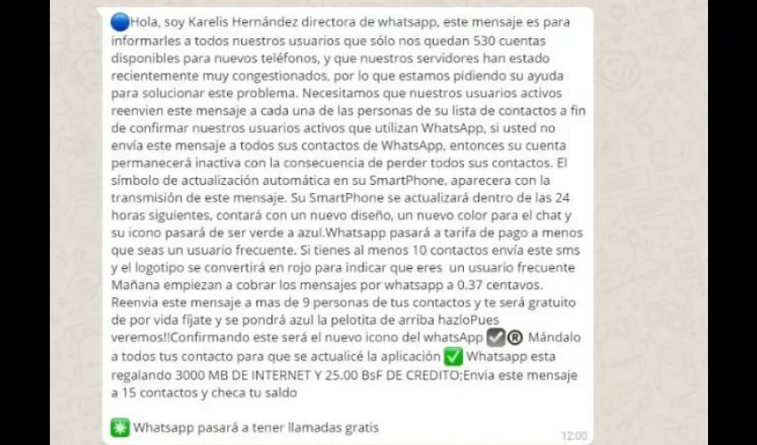 Alertan sobre cadena engañosa que circula en WhatsApp