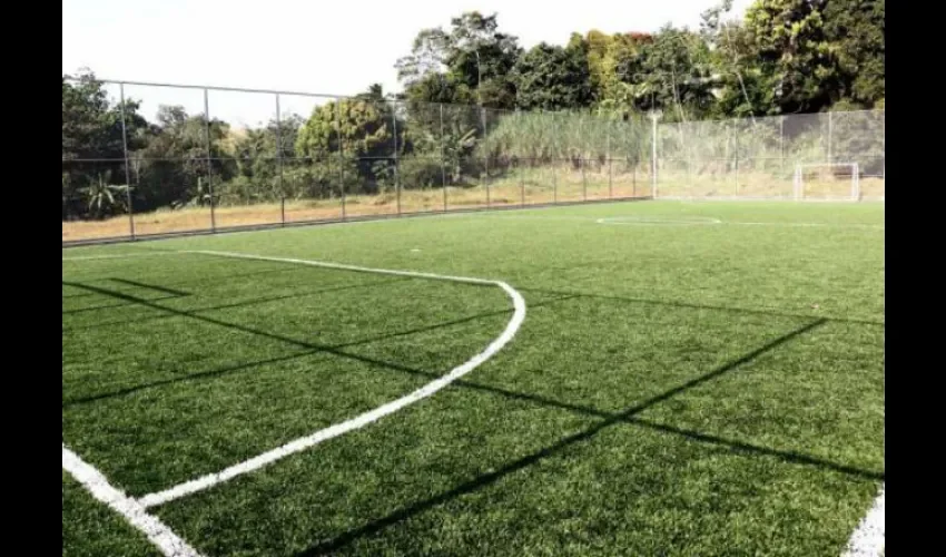 Esta obra contiene una cancha de fútbol de grama sintética, con medidas de 23 x 43 mts, donde se podrá practicar disciplinas como flag football, fútbol y fulbito.