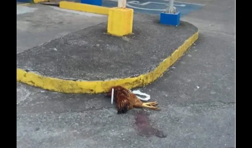 Con asombro y recelo algunas personas vieron este fin de semana, a la gallina muerta que se encontraba en el pavimento frente al Banco Nacional del corregimineto de Sabanitas en Colón.
