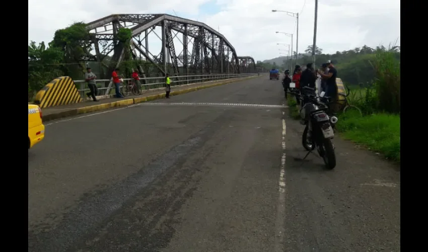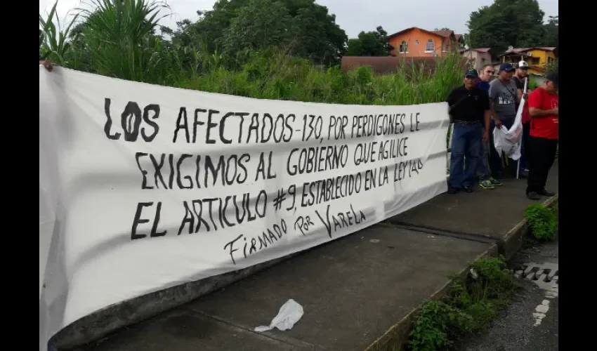Un grupo de afectados por los perdigones durante los enfrentamientos entre trabajadores bananeros y unidades antimotines en julio del 2010, protestaron la tarde de este martes pacíficamente, en uno de los extremos del puente sobre el río Changuinola en Bocas del Toro.