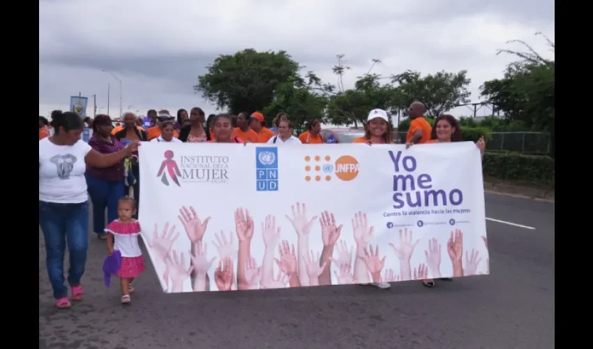 Las mujeres se concentraron con pancartas en los predios de la cancha sintética en la entrada de Colón, hasta los predios del parque de calle 10, avenida Central, donde realizaron una cadena humana, además de entregar panfletos a los transeúntes, de cómo detectar los signos para no convertirse en una víctima de la violencia.