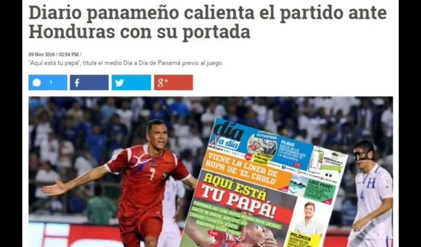 No, lo mencionamos porque la portada que publicó ayer día a día, titulada "Aquí está tu papá", en referencia a que los catrachos no han podido superar a Panamá desde el 2000, provocó "ronchas" entre algunos medios hondureños.
