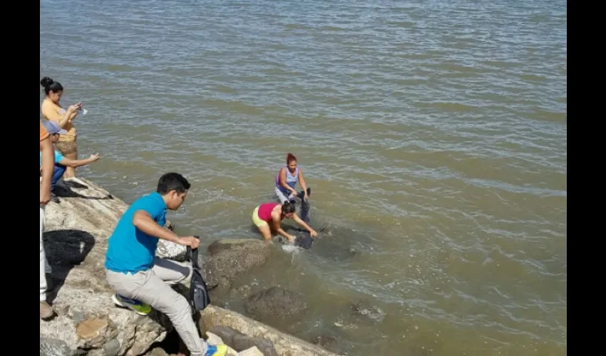 Zulay Hernández, comerciante en el área informó que los pescadores se percataron del hecho y procedieron a llevarlos a aguas más profundas para tratar de salvarlos.