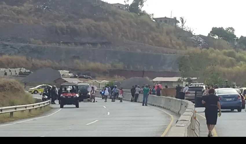 Un grupo de personas mantienen el Corredor Norte cerrado, especificamente en la salida que da a Villa Lucre.
