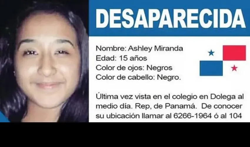 La Policía Nacional, informó en su cuenta de Twitter, que tras un intenso operativo, encontraron en Capira a la menor Ashley Miranda, quien fue reportada como desaparecida en Chiriquí.
