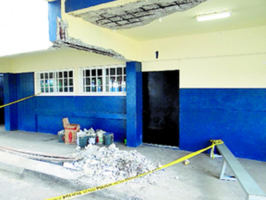 Delfia Cortez / Colón / Ilka Domínguez, inspectora y docente de la escuela Porfirio Meléndez, en Colón, se salvó de que parte de una losa le cayera en la cabeza..Domínguez explicó que caminaba por el pasillo donde está el salón de informática cuando ocurrió el accidente que por suerte no le afectó.La directora del plantel, María del Carmen Bernal de Medrano, informó que al ocurrir el hecho de inmediato hicieron contacto con el Meduca y enviaron al Departamento de Ingeniería para que realizara los trabajos.
