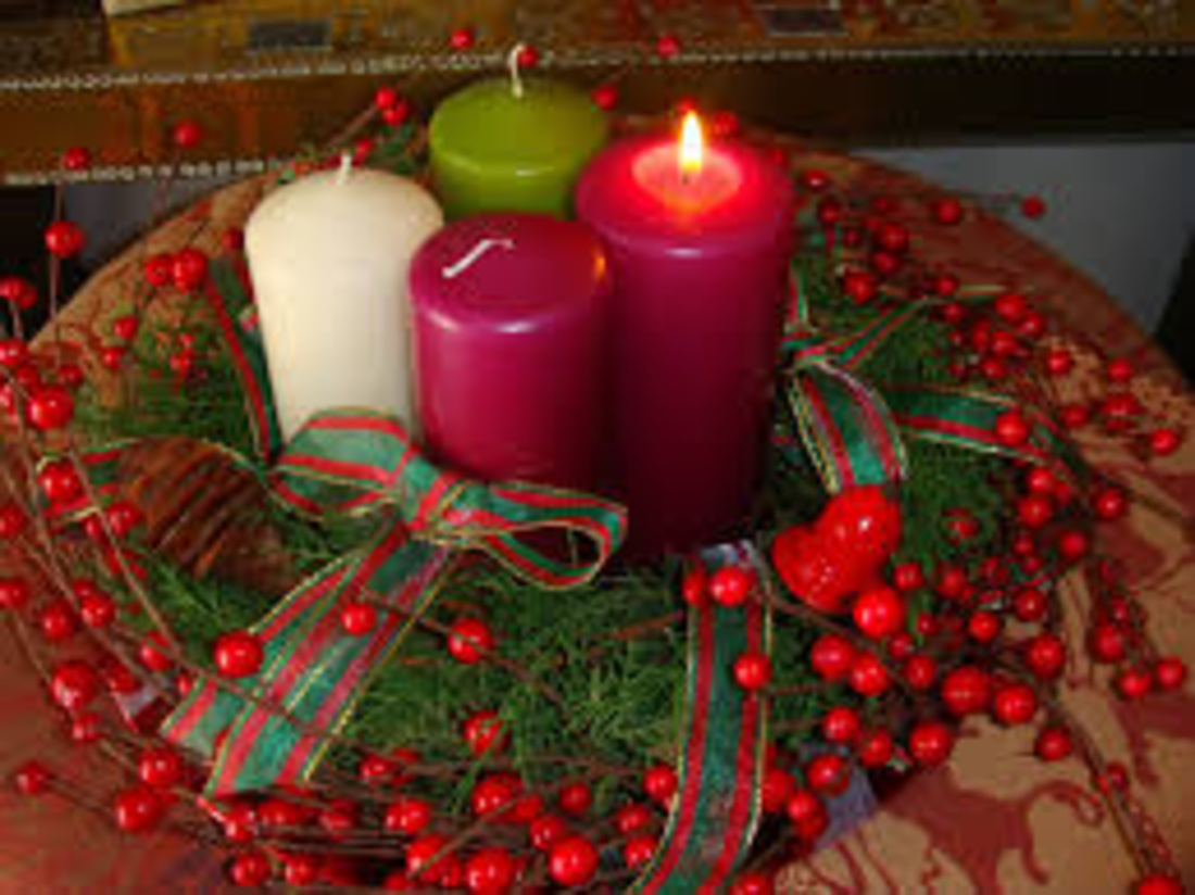 Este símbolo se hace con follaje verde sobre el que se insertan cuatro velas. Tres velas son moradas o violeta, una es rosada o blanca. El primer domingo de Adviento encendemos la primera vela y cada domingo de Adviento se prende una vela más hasta llegar a la Navidad.