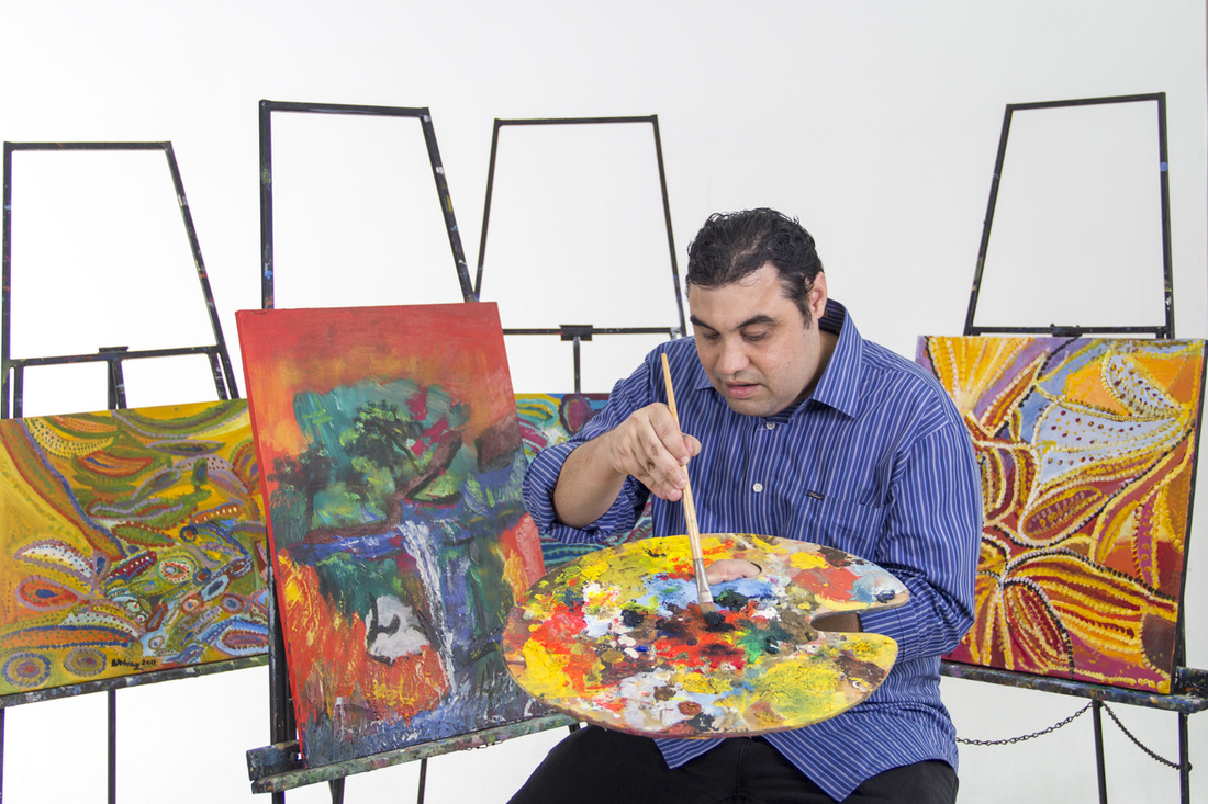 El artista maneja el color y las composiciones libres, creando, por medio de sus obras pictóricas, una forma de expresión abierta, estimulante y espontánea que llega a todo tipo de espectadores.