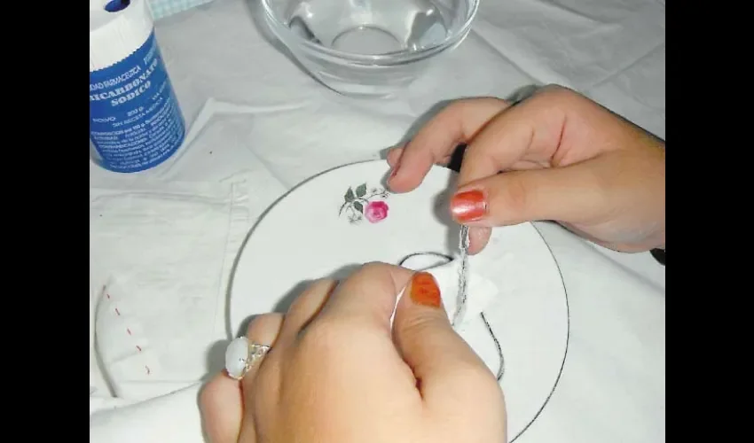 *Prendas de plata: En un recipiente pequeño, agregar agua caliente. Añadir una cucharada de sal y revolver la solución hasta que la sal se disuelva, luego sumergir la joya por varios minutos.