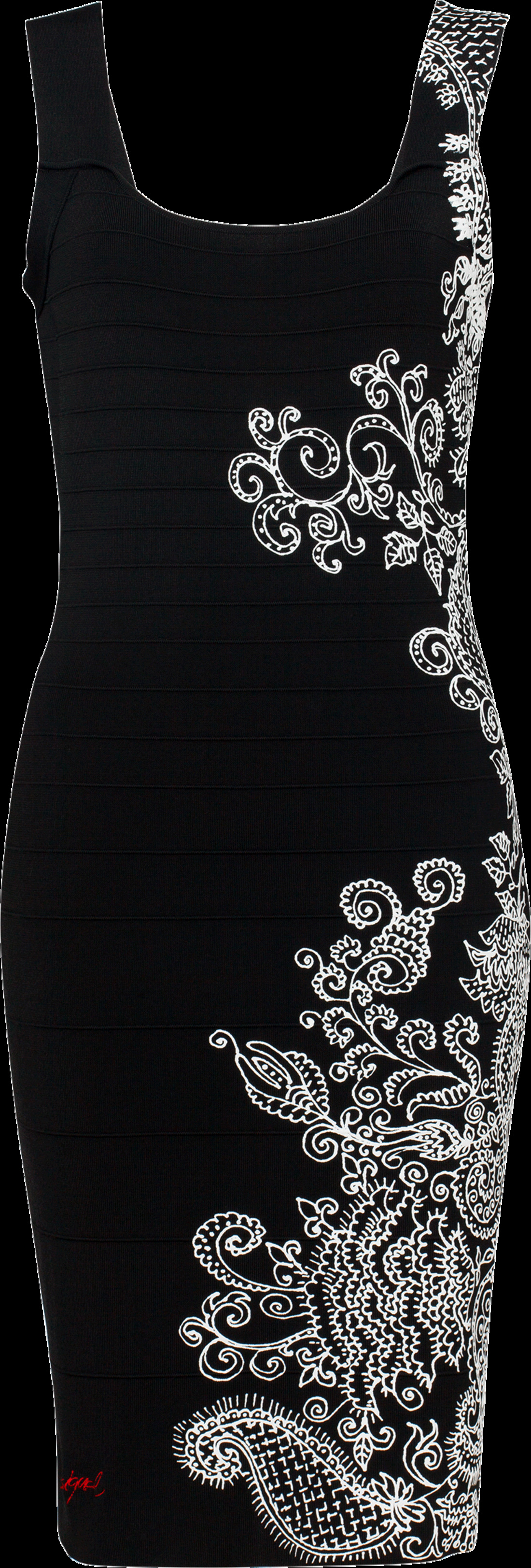 Una de las tendencias de la temporada es el black and white que por cierto es muy difícil de combinar entre piezas. Bueno para que no te compliques si combina o no, la marca Desigual te trae lindos vestidos enteros.