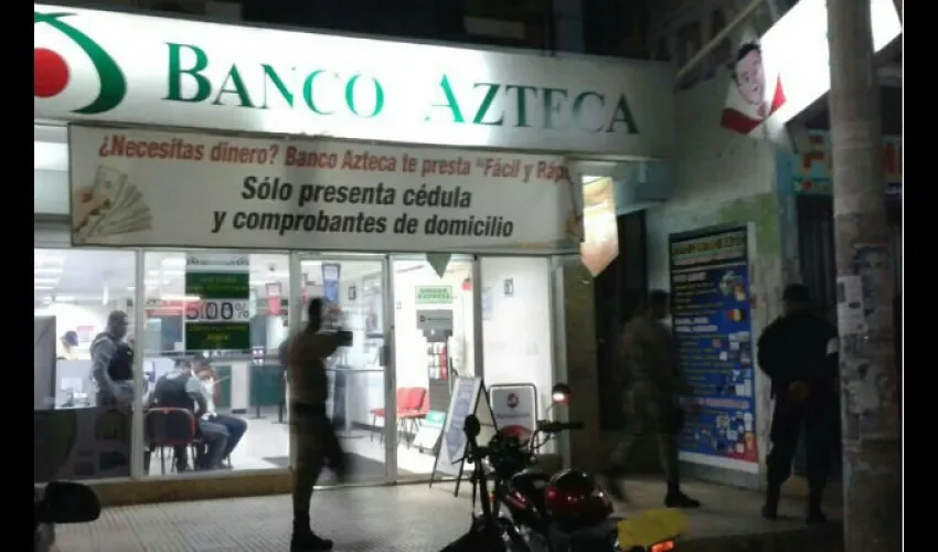 Tres sujetos armados irrumpieron en la sucursal del Banco Azteca, ubicado en la Avenida de Las Américas, corregimiento de Barrio Balboa, en el distrito de La Chorrera, llevándose la suma de 15 mil dólares.