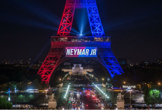 Neymar recibió un homenaje en la torre Eiffel
