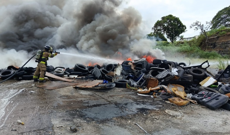 De acuerdo con el capitán Alexander Pérez, aproximadamente 10 unidades bomberiles se mantienen desplegadas en el lugar, debido a que gran parte del material combustible, principalmente llantas, se encuentra incendiado en su totalidad, generando una alta carga térmica y densa emanación de humo.