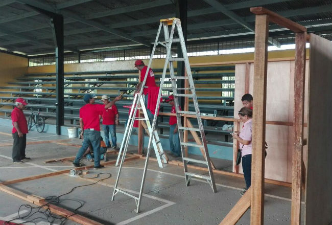 Trabajadores de la Junta Comunal de Juan Díaz construyen un albergue con unos 16 cuartos en el gimnasio municipal Arturo Brown, ubicado en la calle primera Cuidad Radial, del corregimiento de Juan Díaz para reubicar a los moradores del sector de "El Pantanal". La construcción del albergue se realiza debido a que este viernes, los moradores de "El Pantanal" serán desalojados del terreno privado donde vivieron por más de 40 años. Estos invasores están a la espera de una respuesta habitacional permanente por parte del Ministerio de Vivienda y Ordenamiento Territorial (Miviot), pero todo a quedado en promesas, según ellos han manifestado.