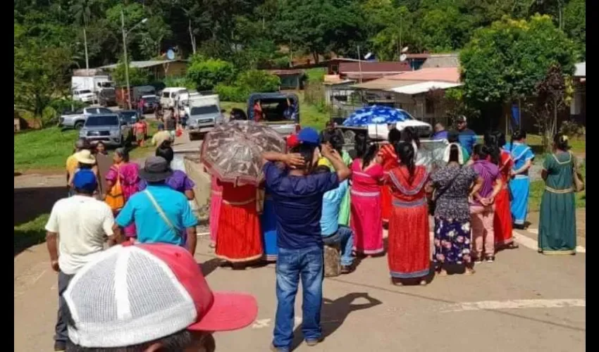 Este 16 de agosto de 2023, se registró un cierre de vía frente a la Escuela Alto Caballero, distrito de Mua, en la Comarca Ngäbe Buglé.