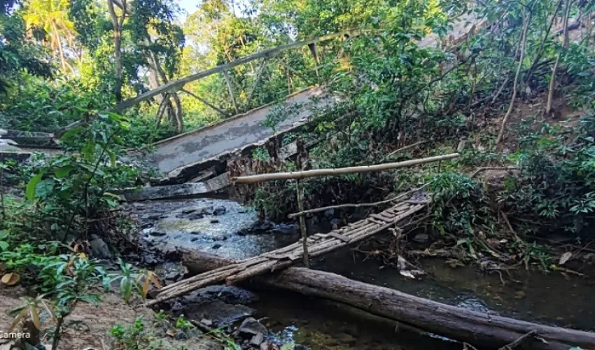 La construcción de un puente provisional sobre el cauce del río Perequete, utilizando troncos y varas de árboles, ha sido la solución adoptada por vecinos del corregimiento de Villa Carmen de Capira, luego que, debido al sobrepeso de un camión, colapsara el puente vehicular existente.