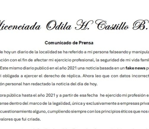 Licenciada Odila Castillo - Comunicado de prensa