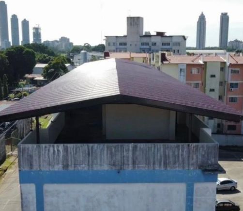 Realizan trabajos de reparación en el techo del edificio La Paz en Villa Norma