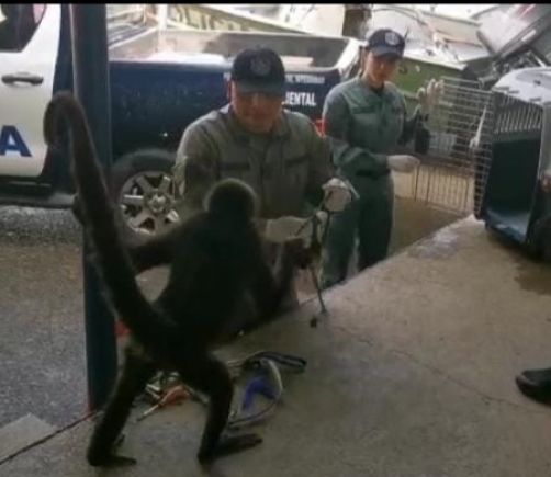 Rescatan a mono araña que tenían encadenado en Capira; tenía lesiones en el cuello