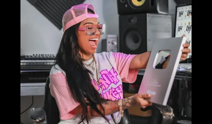 La carrera de Anyuri va subiendo como la espuma, y muestra de ello es que ya alcanzó los 100 mil suscriptores en su canal de YouTube y eso la hizo merecedora de su placa.
