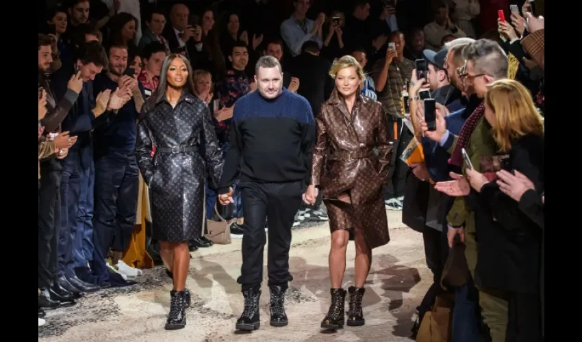 Vestidas con una gabardina estampada con el famoso logo de Vuitton, las británicas salieron de la mano del diseñador, que aún no tiene sustituto y que podría -según el portal especializado Business of Fashion- convertirse en el nuevo diseñador de Burberry.