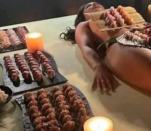 Kanye West celebra su cumpleaños con una mujer desnuda cubierta de sushi