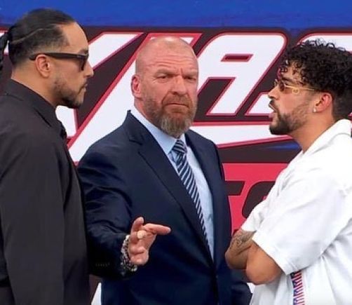 ¡Voló! Bad Bunny tiene una salvaje reacción luego de ser empujado por Damian Priest en conferencia de prensa de la WWE