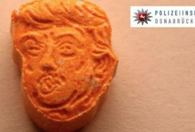 El nuevo diseño de algunas pastillas éxtasis con el rostro de Donald Trump han causado revuelo en el mundo digital y es que recientemente fueron decomisadas por la policía alemana, cerca de la ciudad de Osnabrück. En total fueron 5 mil anfetaminas color naranja que, según reportes, estarían dirigidas a su venta por internet con el slogan "Trump makes partying great again" ("Trump hace la fiesta genial"). Durante la detención de un hombre de 51 años y su hijo de 17, quienes viajaban en un auto con placas de Australia, los agentes sospecharon que ocurría algo extraño y al revisar el vehículo hallaron las drogas y una fuerte cantidad de dinero. Las pastillas éxtasis bloquean los receptores de la serotonina, el neurotransmisor que regula el humor. Con ello se producen sensaciones de euforia, alegría y una percepción alterada de la realidad. Con información de periodicocentral.mx