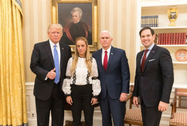 El presidente de EEUU, Donald Trump, recibió hoy en la Casa Blanca a Lilian Tintori, la esposa de Leopoldo López, y pidió la liberación de este dirigente opositor venezolano condenado a casi 14 años de cárcel por haber incitado unas manifestaciones que se saldaron con más de 40 muertos en 2014. Venezuela debería permitir que Leopoldo López, un prisionero político y esposo de @Lilian Tintori (a la que conocí junto a @marcorubio), salga de la cárcel inmediatamente, afirmó Trump en un mensaje en su cuenta de Twitter, acompañado de una fotografía de él con la esposa del dirigente opositor en el Despacho Oval. Además de Trump y Tintori, el vicepresidente estadounidense, Mike Pence, y el senador republicano Marco Rubio, con el que tenía previsto cenar hoy el presidente, también aparecen en la fotografía. Tintori viajó a Washington para plantear en el Senado de EEUU su visión sobre la crisis que atraviesa Venezuela después de que un grupo de 34 legisladores de los dos partidos instara la semana pasada a Trump a sancionar al Gobierno de Nicolás Maduro. En una rueda de prensa celebrada este martes en el centro de estudios Diálogo Interamericano, la esposa de López instó de igual forma a Trump a que haga algo en acciones y no solo en palabras con respecto a Venezuela. Tintori dijo que si el Gobierno de EEUU es democrático, tiene que pedir que se cumplan la ley y los derechos humanos en Venezuela, y tiene que presionar por la liberación de los prisioneros políticos, y apuntó que de no hacerlo se convierten en cómplices de ello. Tras el encuentro con Trump de hoy, la esposa de López también publicó un mensaje en Twitter: Arriba Venezuela. Sigamos con más fuerza a conquistar nuestra libertad!, escribió, citando el tuit del presidente estadounidense. El pronunciamiento de Trump sobre la situación de López es el segundo golpe que propina al Gobierno de Maduro esta semana después de que el lunes la Casa Blanca sancionara al vicepresidente venezolano, Tareck El Aissami, por su presunto papel significativo en el tráfico internacional de narcóticos. Además, el mandatario estadounidense habló el pasado fin de semana de la crisis en Venezuela con los presidentes de Colombia y de Perú, Juan Manuel Santos y Pedro Pablo Kuczynski, respectivamente. López está recluido en la cárcel militar de Ramo Verde, cercana a Caracas, desde que se entregó a las autoridades hace tres años por los delitos de instigación pública, asociación para delinquir, daños a la propiedad e incendio con relación a los hechos violentos que rodearon días antes una manifestación contra el Gobierno.