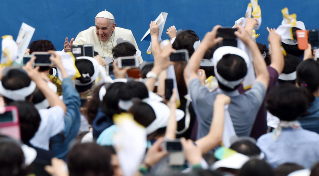 Se trataba de su primer acto multitudinario en Asia, un continente que aún no había visitado, y Francisco aprovechó la misa de la Asunción de la Virgen María en el estadio de Daejeon (centro) para lanzar un mensaje en contra la idolatría de la riqueza y el crecimiento desmedido. En su primera jornada tuvo encuentros privados.