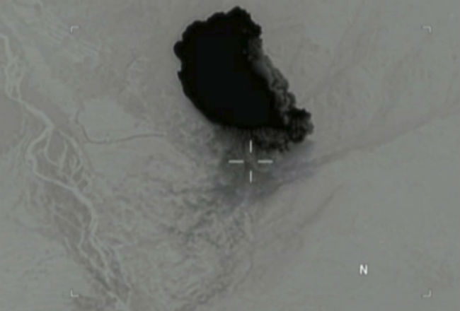El Pentágono difundió hoy el video del momento en que la bomba GBU-43, la mayor no nuclear del arsenal estadounidense, nunca utilizada hasta ayer, impacta contra un sistema de cuevas del Estado Islámico (EI) en Afganistán.